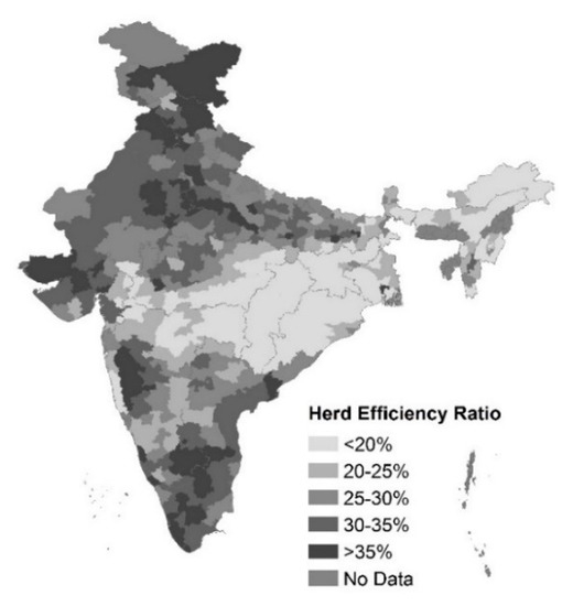 Herd Efficiency Ratio in 590 districts of India in 2012.