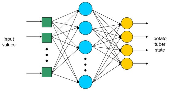 One of the most common issues encountered in the literature concerning agricultural production using artificial neural networks (ANNs) are classification and prediction problems. Examples of the use of this type of modern method are research on the application of modern methods as an alternative or support for processes encountered in agriculture [], both in classification and prediction issues.