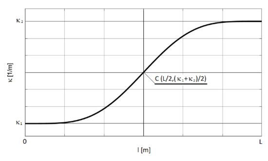 where: —the curvature at the initial point, —the curvature at the terminal point, l—the position of a given point along the curve.