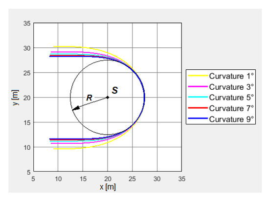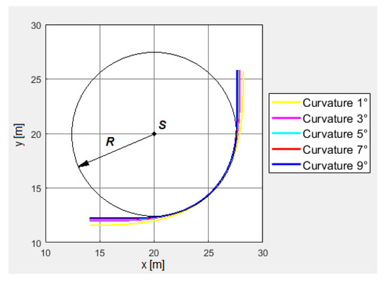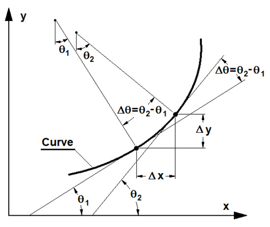 Figure 2 presents the curve with the marked geometrical elements used in Equations (1)–(4).