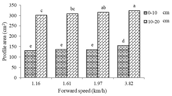 -At both 0–10 and 10–20 cm working depths, the increased forward speed significantly increased the area of profiles created by the cultivators. This effect was not observed between the speeds of 1.16, 1.61, and 1.97 km/h.