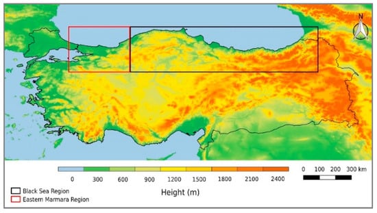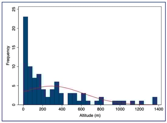 Altitude distribution for 88 locations in the Black Sea region and the eastern Marmara sub-region.