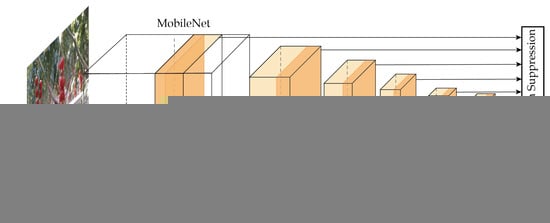 The methods of deep convolutional neural networks in the field of target detection are mainly divided into two categories. One is the target detection framework based on regional proposals, including RCNN [18], Fast R-CNN [19], Faster R-CNN [20], and FPN [21], etc. The other is a framework without candidate regions, the landmark algorithms of which are YOLO [22], SSD. SSD is able to predict the location and classification in one step. Compared with frameworks relied on candidate regions, SSD not only ensures detection accuracy but also improves detection speed. In addition, SSD uses multiple feature layers of different sizes to predict the regression box. Although the speed of SSD is slightly slower, the detection accuracy is significantly improved. Considering the complexity, accuracy, and speed requirements of cherry tomatoes detection, the model based on the SSD was used.