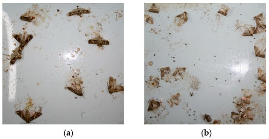 Moth images acquired from pheromone trap: (a) Spodoptera litura; (b) Spodoptera exigua.