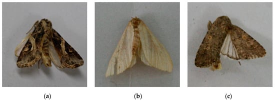 Moth images acquired from open dataset: (a) Spodoptera litura; (b) Helicoverpa assulta; (c) Spodoptera exigua.