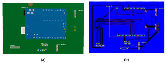 PCB design (a) and layout design (b) for the interface basement module.