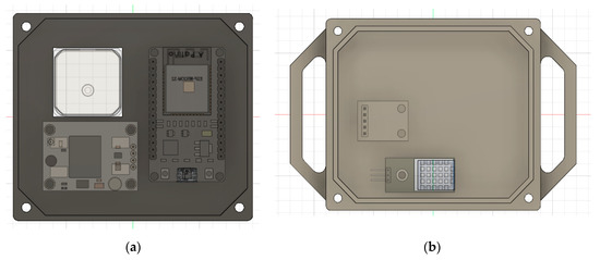 To display the body temperature of cattle, a reasonable module of temperature humidity DHT11 (as shown in Figure 4b) was designed. Its maximum sampling frequency of 1 Hz aids the supervisory system to obtain enough data, while it does not cost much in terms of its hardware. With acceptable precision of temperature and humidity measurements, this sensor is a great tool for farmers to implement in their IoT devices. The jaw motion of livestock is saved owing to MPU-6050 (Figure 4c), which has ability to measure the motion in three-dimensional (3D) space and to return analog signals back to the main CPU. Although it is highly sensitive, incorrect evaluations of the yaw angle are unavoidable, and it tends to vibrate when external forces appear. Thus, filters—for example, a complementary filter or a Kalman filter—should be embedded to prevent drift phenomena.