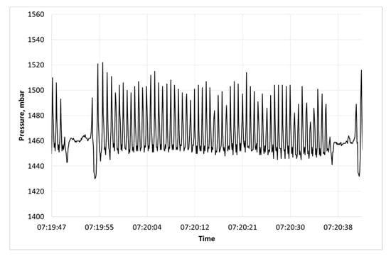 The peak acceleration of the measurement (Figure 2) is around 50 to 100 mg (relative to the offset baseline). Thus, the motion experienced by the accelerometer has a peak amplitude of between 0.56 and 1.125 mm. Respiration is observable at a distance; therefore, it is likely that the amplitude of the movements are greater than 1mm. A neck motion has an amplitude of 1 mm, and at a RR of 60 breaths per minute (bpm), or 1 Hz, will produce an acceleration of 39 mg (Equation (4)). If the RR increases to 90 bpm (1.5 Hz), the amplitude of the acceleration increases to 89 mg. In both cases, the acceleration produced is significantly greater than the RMS noise level of the accelerometer viz. 1.12 mg (equivalent to a movement in the order of 28 μm at a frequency of 1 Hz). In practice, whole body motions may be larger than 1 mm, but it is also possible that the mechanics used to attach the collar (a webbing strap) will de-couple the motion. Therefore, the above estimation, while conservative, is realistic.