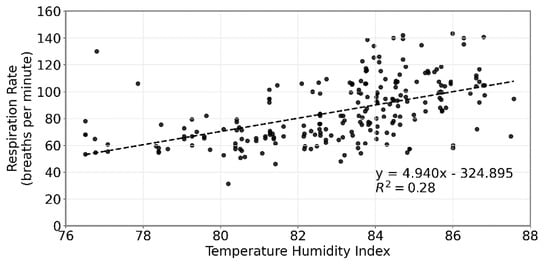 Respiration Rate (RR) variation with Temperature Humidity Index (THI).
