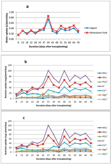 - Kinoshita, T.; Masuda, M. Differential Nutrient Uptake and Its Transport in Tomato Plants on Different Fertilizer Regimens. HortScience 2011, 46, 1170–1175. [Google Scholar] [CrossRef]