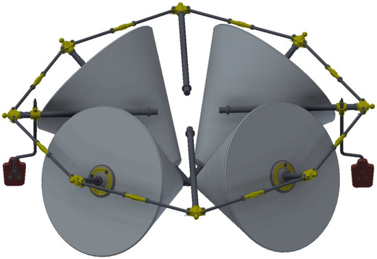 In standstill conditions, the conical stones olive oil mill can be studied as a static set of elements that are only affected by gravitational force, but there is a case in which the mill is subjected to a greater stress that causes greater stresses in the whole set—a blockage of one of the stones. The static analysis to be carried out on the mill occurs in the situation of shutdown due to blockage, and therefore from all the positions that the assembly can adopt, we will choose precisely the one that reflects this situation.