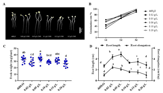 3.1. Effects of CMS on Rapeseed Germination and Seedling Growth