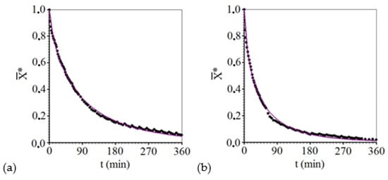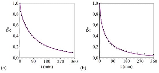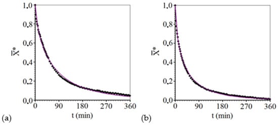 Determination of effective mass diffusivity and simulation of drying kinetics through the diffusion model presented above were performed using the program Prescribed Adsorption–Desorption [15], which uses the first 200 terms of the infinite series given by Equation (12) and also by Equation (8).