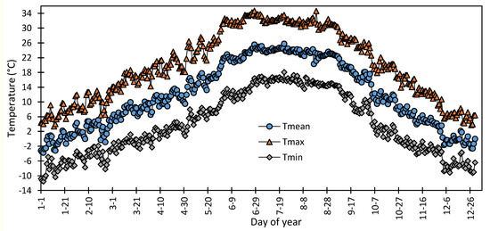 - O’Neill, M.K.; Smeal, D.; West, M.M.; Allen, S.C.; Djaman, K. Forty-Eight Years (1969–2016) of Climatological Data: NMSU Agricultural Science Center-Farmington, New Mexico; PES Bulletin 809; NMSU: Las cruces, NM, USA, 2018. [Google Scholar]