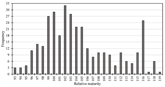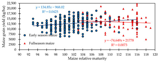 3.1. Relationship between Maize Hybrid Yield and the Relative Maturity