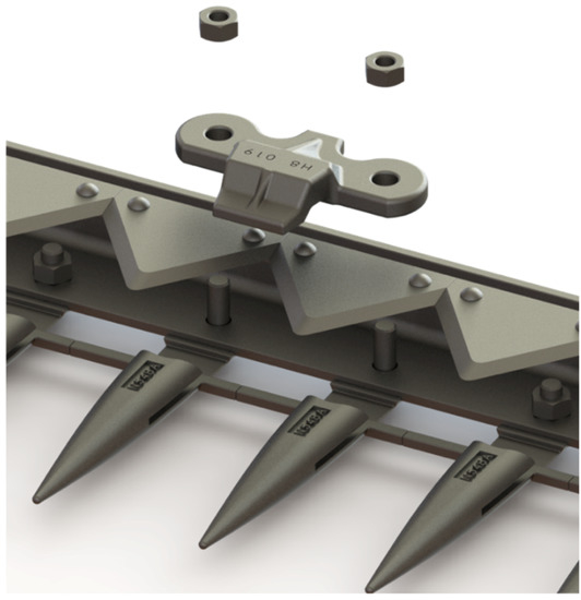 This is the most important system of the machine, since it is responsible for automatic reaping thanks to the traction provided by the draft of the animals. It is formed by a series of comb-shaped tines to tackle the crop in an optimal way, and also, serves as a cutting holder in the movement of the blades (Figure 4).