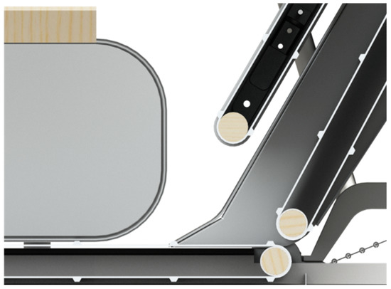 This is the most complex and sophisticated system of the machine due to the precision and synchronism that all its elements must possess for its proper operation. Once the sheaves are transported to the upper part, they pass through some plates (Figure 19) that, by means of an oscillating movement provided by a connecting rod/crank mechanism (Figure 20), group the sheaves so that the subsequent packaging is as homogeneous as possible.