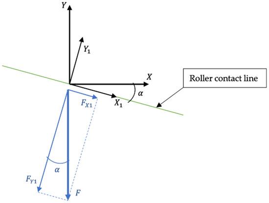 In order to understand this aspect, the decomposition of forces is represented in the line of contact between the roller and the conveyor belt (Figure 15).