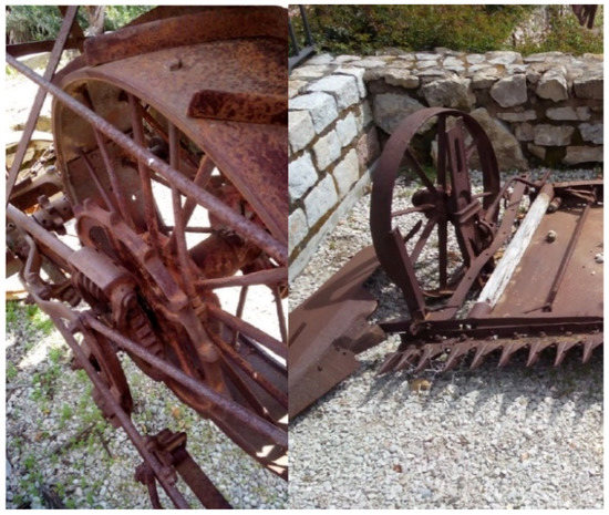 After reaping, the threshing took place. This is an activity that consisted of removing the cereal grain from the straw by using instruments, such as a flail or a flint-embedded threshing board, or through other primitive manual methods. Reaping and threshing were independent processes carried out with different tools at different times, in contrast to what occurs today. However, these tasks underwent continuous evolution thanks to the industrial revolution and to the appearance of very large cultivable areas and, consequently, are nowadays carried out with one single machine: the combine harvester. There are currently numerous publications that, from a technical point of view, study improvements made in such machines in general [3,4,5,6].