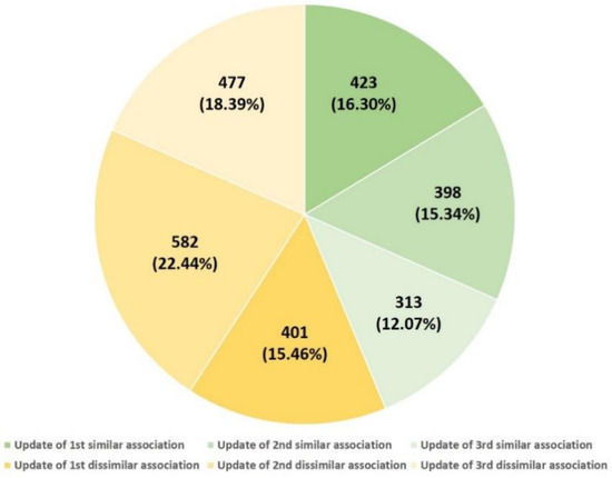 For verifying the updated association table, the times of updates in both similar and dissimilar associations are counted, shown in Figure 13.