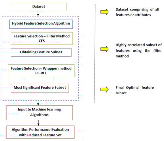 | Algorithm Name | Model Accuracy with All Features in the Dataset (%) | Model Accuracy with Algorithm Inbuilt Feature Importance Method (%) | Model Accuracy with CFS Filter and RF-RFE Wrapper Feature Selection Method (%) |