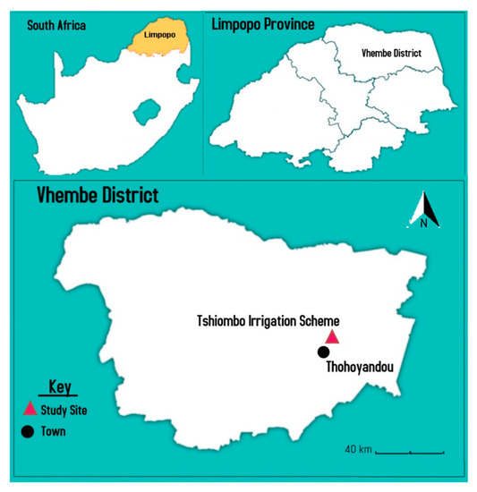 - van Koppen, B.; Nhamo, L.; Cai, X.; Gabriel, M.J.; Sekgala, M.; Shikwambana, S.; Tshikolomo, K.; Nevhutanda, S.; Matlala, B.; Manyama, D. Smallholder Irrigation Schemes in the Limpopo Province, South Africa; International Water Management Institute: Pretoria, South Africa, 2017; Volume 174. [Google Scholar]