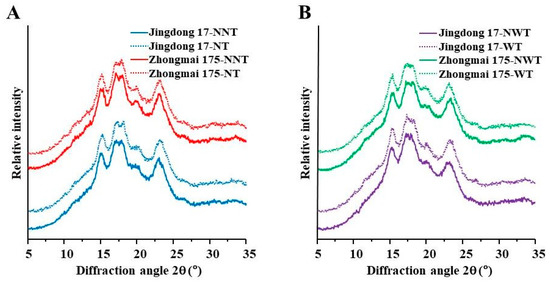 - Xia, J.; Zhu, D.; Chang, H.; Yan, X.; Yan, Y. Effects of water-deficit and high-nitrogen treatments on wheat resistant starch crystalline structure and physicochemical properties. Carbohydr. Polym. 2020, 61, 115905. [Google Scholar] [CrossRef]