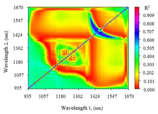 Determination coefficients for all dual wavelength combinations of hyperspectral reflectance.