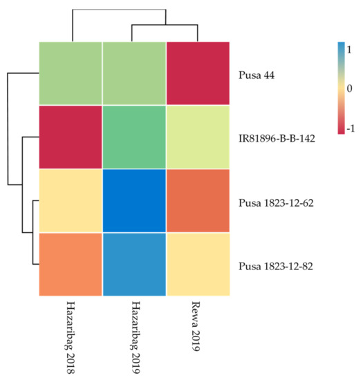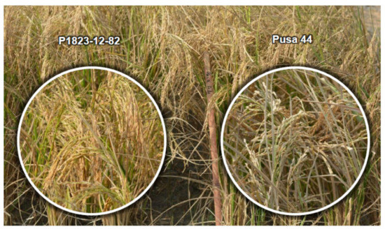 4.2. Agronomic Performance of Pusa 44 NILs under Stress and Non-Stress Conditions