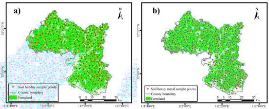 Sampling distribution: (a) samples for selection of the soil fertility indicator; (b) samples for selection of the soil pollution indicator.