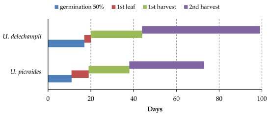 Crop cycle of U. delechampii and U. picroides grown in a floating system.