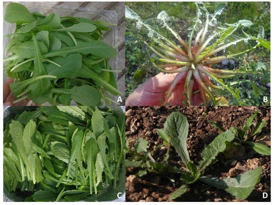 Attempts have been made to cultivate certain WEP in the open field, greenhouses and even in soilless systems. For example, Asparagus acutifolius L. [], Diplotaxis tenuifolia L. [], Borago officinalis L. and Taraxacum officinalis L. [], Muscari comosum (L.) Mill. [], Brassica fruticulosa Cyr. [], Crithmum maritimum L. [] and Portulaca oleracea L. [,] could be cultivated on a large scale. Others could be exploited on a large-scale as new crops expressing agro-biodiversity []. In this context, it is interesting to note that many WEP are listed as an item in the ‘List of Traditional Agri-Food Products’ (TAFP) of the Italian Department for Agriculture, since their processing, preservation and ageing methods are consolidated in time, harmonious for all the region involved, according to traditional rules, for a period not less than 25 years [].
