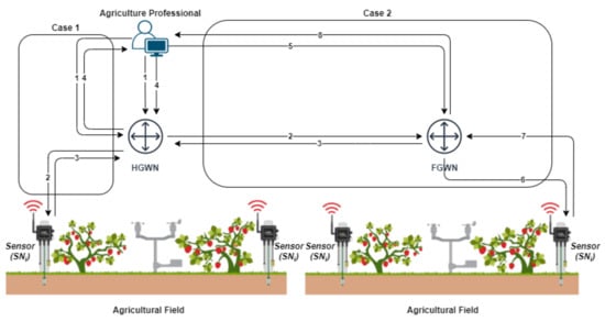 - User/agriculture professional registration: Before participating in any communication during this phase, the user or agriculture professional must register with one of the GWNs. Assuming that the user chooses to register with HGWN, he or she must follow the steps outlined in Figure 6: