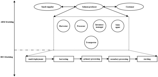 In a call for the integration of social science knowledge into the next generation of fisheries management models, it is argued that fisheries management may fail when the existing models used to inform decision making are based on unrealistic and limited assumptions []. In our paper, we attempt to address this gap, by developing a hybrid simulation model of the Norwegian salmon supply chain, which captures the social science knowledge through agent-based simulation and the production process characteristics through discrete-event simulation. This enables the complex interactions of an aquaculture supply chain to be modelled effectively.