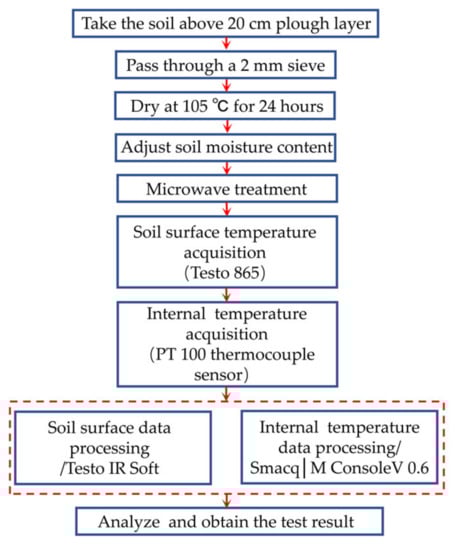 Flowchart of the exploration experiment on the temperature distribution in microwave-treated soil.