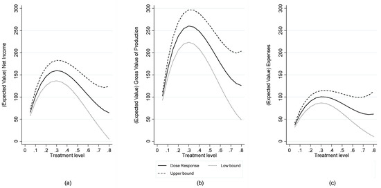From (7), it becomes possible to obtain the average potential result of for each treatment level. That is, it is possible to identify the effect of different levels of MSCM on average agricultural net income, as well as on the value of production and expenses.