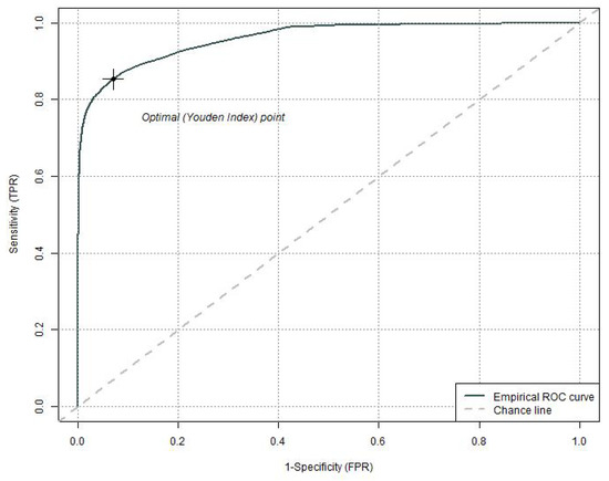 - Khan, R.A.; Brandenburger, T. ROCit: Performance Assessment of Binary Classifier with Visualization. Version: 2.1.1. 2019. Available online: https://cran.r-project.org/web/packages/ROCit/index.html (accessed on 1 September 2021).