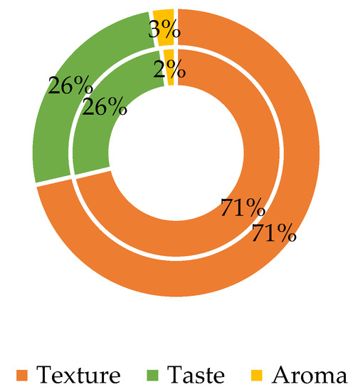 Figure 4 summarizes the results of the tasting evaluation of locally grown japonica rice by consumers from different staple food groups. Overall, 57% of those whose staple food was rice had ratings of “very good” or “good”, whereas the value for those whose staple food was something other than rice (hereafter, the non-rice group) was 76%, and 10% of the respondents in the rice group and 11% in the non-rice group rated it as “dislike”. Overall, about 90% of all respondents rated the food as acceptable. This shows that even those who do not normally eat rice may eat locally grown japonica rice, which indicates that this rice could become a good staple food for those who do not normally eat rice. Figure 5 shows the positive aspects of locally grown japonica rice that were identified through tasting. Regardless of group, 71% of respondents answered “texture”, 26% answered “taste”, and 3% answered “aroma”. Notably, “texture” received a high rating because this rice has a slightly sticky texture.