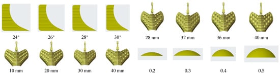 The textured shovel wing models with different structural parameters.