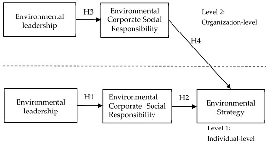 Indeed, the theory of social cognition also confirms the hypothesis that human-level systems and environmental-level systems can affect human-level systems at the same time [45]. In other words, organization-level and individual-level EL can influence individual-level ES through the mediating effect of organizational-level and individual-level ECSR. Previous empirical studies have tested similar hypotheses [46,47,48].