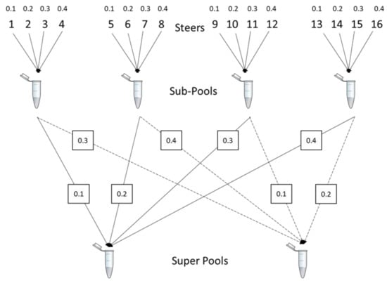 Planned sub-pool contributions to super pools are in Table A1 as depicted in Figure 1. This design is replicated with sub-pools of animal with liver abscess or normal livers.