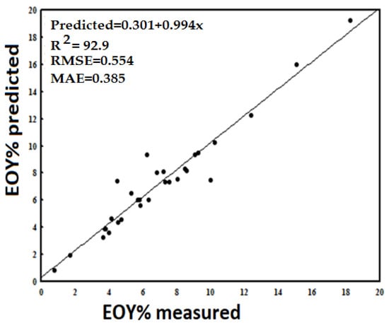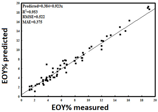 3.3. Comparing MLR and ANN Models to Predict EOY% and TAY% of Fennel Populations