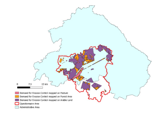 With this background from the literature, we were able to identify four main research gaps: (1) a lack of translation of trade-offs into the spatial dimension. ES assessments have become precise in identifying gaps of supply of singular and multiple ES. However, trade-offs between ES, especially regulating ES, become visible only if displayed in a spatially explicit context; (2) a lack of sufficient differentiation by beneficiaries of ES. Demands are directly related to the people benefiting from the supply. In the case of regulating ES, beneficiaries can be the people living directly in the surrounding area of the ES produced (e.g., water regulation) or people benefitting from the global effects of climate regulation worldwide (e.g., carbon sequestration); (3) a lack of studies spatially assessing the demand for regulating and provisioning ES. Most studies using PGIS assess preferences for cultural ES. Empirical assessment of the demand for and understanding of regulating ES is missing; and (4) the lack of an empirical grounding of Geijzendorffer’s concept regarding demand.