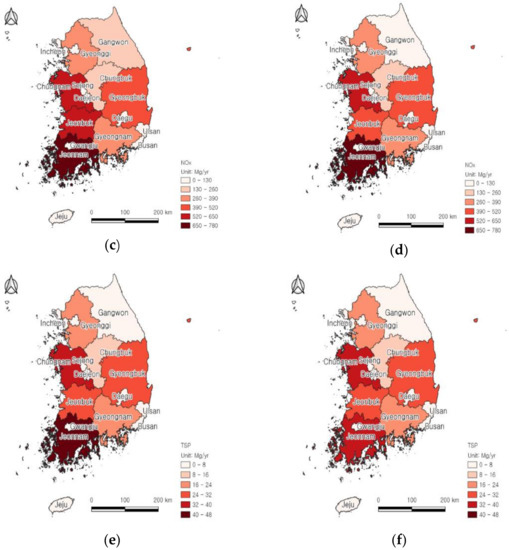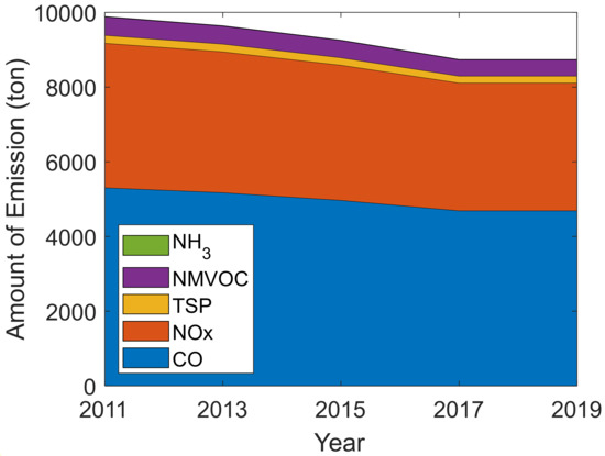 - NIER. A Handbook of Method for National Air Pollutant Emission Estimation; National Institute of Environmental Research: Sejong, Korea, 2013. [Google Scholar]