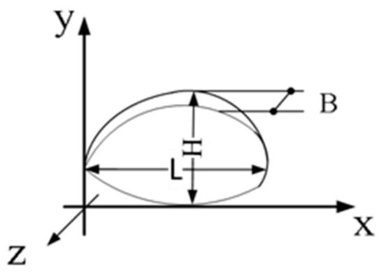 In this study, Shaanxi Caijiapo purple garlic with a single grain weight of more than 3 g is selected as the research object. The external shape dimensions of garlic are defined in a three-dimensional coordinate system, as shown in Figure 1. The maximum length (L), width (B), and height (H) of the garlic clove placed horizontally are represented in the x, y, and z directions, respectively.