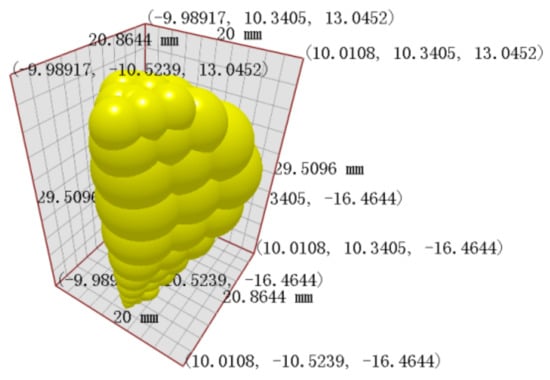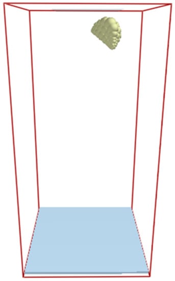 As the initial conditions of the simulation, the number of particles selected is 300, the time step of the simulation test is 1.69310−6 s, the simulaton time is set to 10 s, and the particle factory setting is as shown in Figure 10.