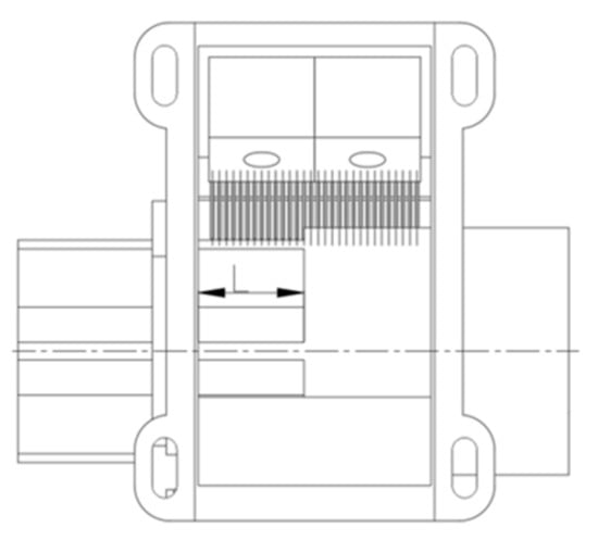 A virtual test of seed metering performance was conducted by using EDEM software to study the effects of adjustment size, L, of the seed metering device regulator and working speed on seed metering performance. This will provide a reference for the optimal design of the seed metering device and its key components. The adjustment size, L, of the regulator is shown in Figure 12.