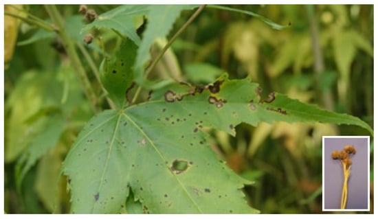 - Remlein-Starosta, D.; Nijak, K. Virginia mallow—First results on investigation on possibilities of pest and diseases control. Prog. Plant Prot. 2007, 47, 358–362. (In Polish) [Google Scholar]