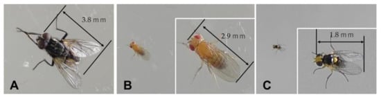- Harmon, D.S.; Haseeb, M.; Kanga, L.H.B.; Liburd, O.E. Evaluation of monitoring traps and lures for Drosophila suzukii (Diptera: Drosophilidae) in berry plantings in Florida. Insects 2019, 10, 313. [Google Scholar] [CrossRef]
