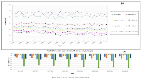 - Wang, Z.; Chen, J.; Xing, F.; Han, Y.; Chen, F.; Zhang, L.; Li, Y.; Li, C. Response of cotton phenology to climate change on the North China Plain from 1981 to 2012. Sci. Rep. 2017, 7, 1–10. [Google Scholar] [CrossRef] [PubMed]
